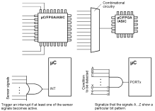 Die Einheitsbedientafel 02/10 braucht nur einen einzigen 8-Bit-Port. Man kann sie schnell mal an einen Mikrocontroller anschließen, um zu sehen, was los ist. Hier ist erst einmal die Kommunikation zwischen den Mikrocontrollern einzufahren, zunächst über das Bedieninterface, dann über das Kommandointerface. Um dabei etwas zu erkennen, ist jeder der sechs Mikrocontroller mit einer eigenen Einheitsbedientafel verbunden.
